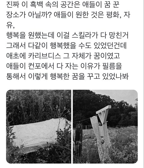 카리브디스가 멤버들이 원하는 행복한 꿈일 수도 있대 그래서 11월 30일 날짜인데 덥다고 써있는 이유도..