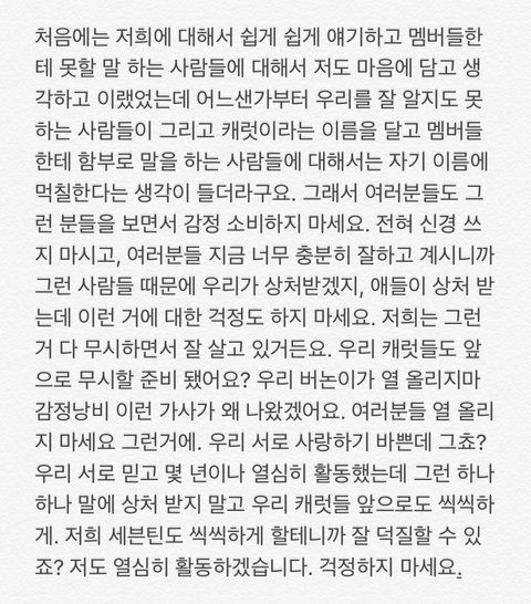 물론 완벽하게 잘할 수는 없을테지만 승관이 말처럼 굳이 그런 거 연연하지말고 우리 할 거하면서 씩씩하게 이번 앨범 커하 만들어주자