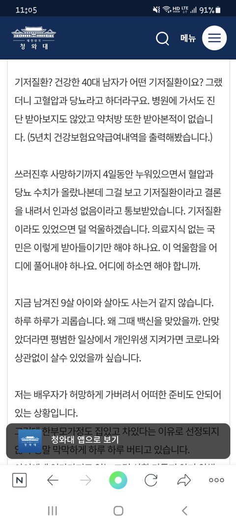 코로나백신 접종후 41세 가장이 보름만에 사망했습니다.
