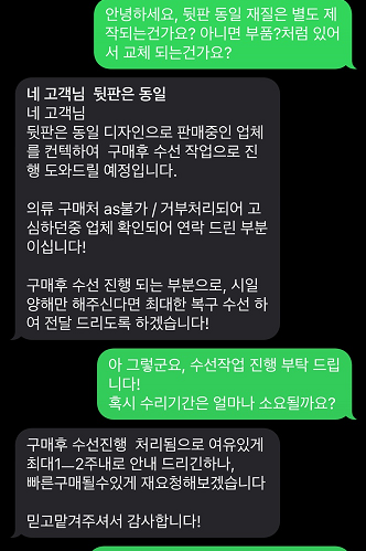 하지만 정말 끝날 때까지 끝난게 아니기 때문에 수리된 옷 수령하면 인증하도록 하겠습니다. 많은 분들이 관심 가져주신만큼 후기 쓰는 것이 도리라 생각됩니다.