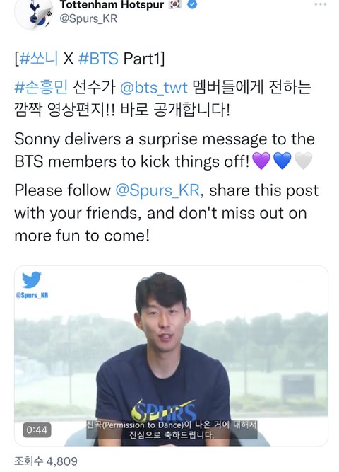 손흥탄민이님 애들한테 메세지 남김