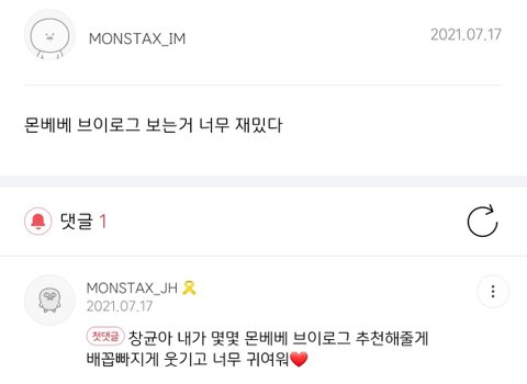 아니근데 몬엑이 예전부터 몬베베 브이로그 자주본다고 했는데
