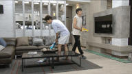 동생 청소하는 데 과자 다 흘리고 먹기