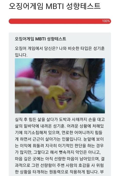 오징어게임 테스트 mbti 해보셨나요?