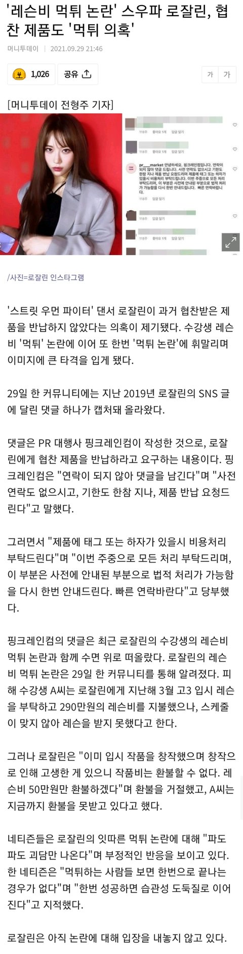 인스타에 로잘린 협찬 먹튀라고 돌아다니는건데