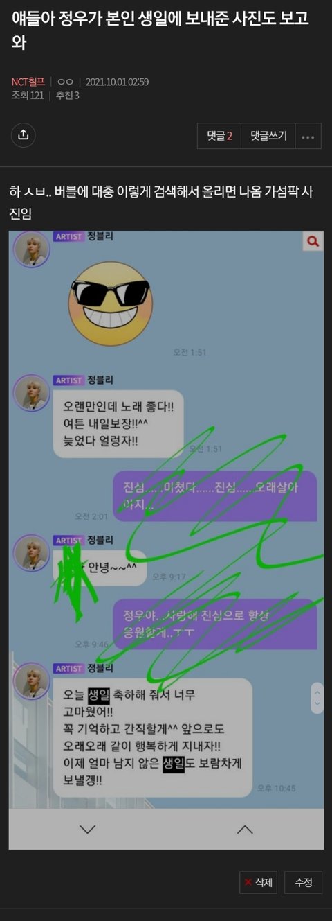 쓰잘때기 없는 걸로 부심 뭐 그런 거 갖는 게 아니라 걍 내가 올린ㄴ 글에 또 누가 글을 올리고 그런식으로 플 시작되는 거 넘 신기해.. 기념으로 내 최애버블도 올림