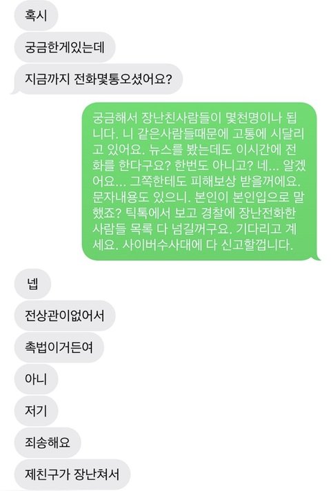 경찰에 넘긴다고 해도 촉법이라서 상관없다고 저렇게 답장하더라 ㅋㅋ