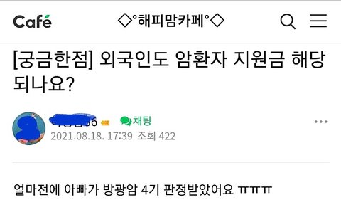 조선족들이 국민 혈세로 암치료 받고 중국으로 다시 돌아 간다는 썰 있더라