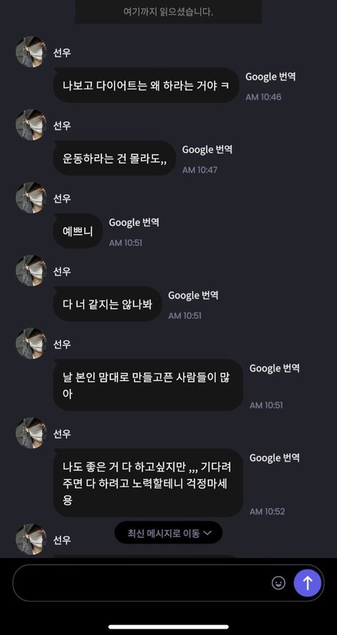 먹금하려다 걍 한마디만 할게 올해 초부터 팬들이 살빠졌다고 공카 브이앱 프메 트위터에다가 하도 걱정해서 자기는 먹어도 빠지는거니까 걱정말라고 팬들 보여주겠다고 브이앱켜서 밥먹는 것도 보여주고 프메에서 일부러 밥얘기 후식얘기 겁나했어 사실상 1년 가까이를 살 얘기만 질리도록 들었는데 이번에는 또 살을 빼라고 도배해 이제 어느 장단에 맞출까? 얘는 싫은티 좀 내면 안되냐?ㅜㅜ그리고 팬이 보낸거니까 참으라니ㅋㅋㅋ누가 그래 그딴게 팬이라고