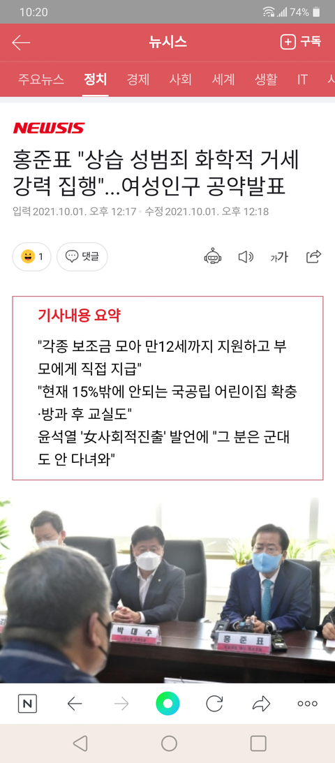 홍 할아버지 성범죄자 사형제도 그렇구 공약 좋은듯