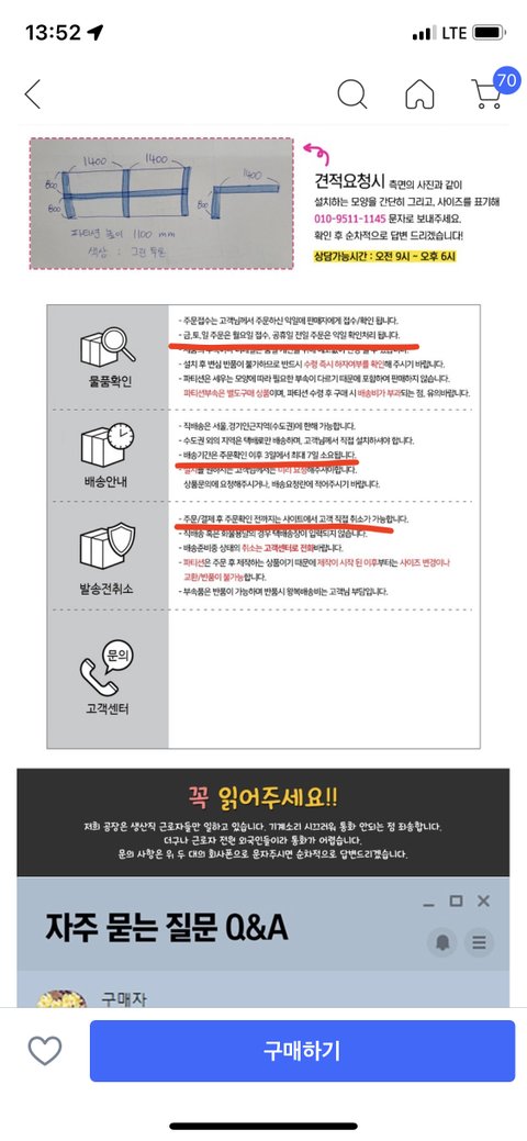 9월 10일 금요일에 쿠X에서 파티션을 2개를 20만원에 구입했습니다. 거기에 주문제작 상품이라고 되어있어 제작에 들어가면 환불이 안된다고 하더군요.