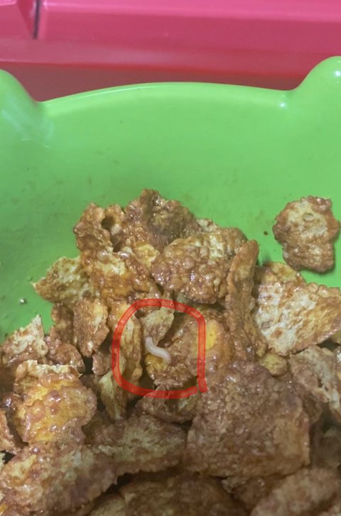K사에서 주문한 시리얼에 우유 부어서 먹고 있다가 애벌레가 기어나온 걸 발견했습니다.