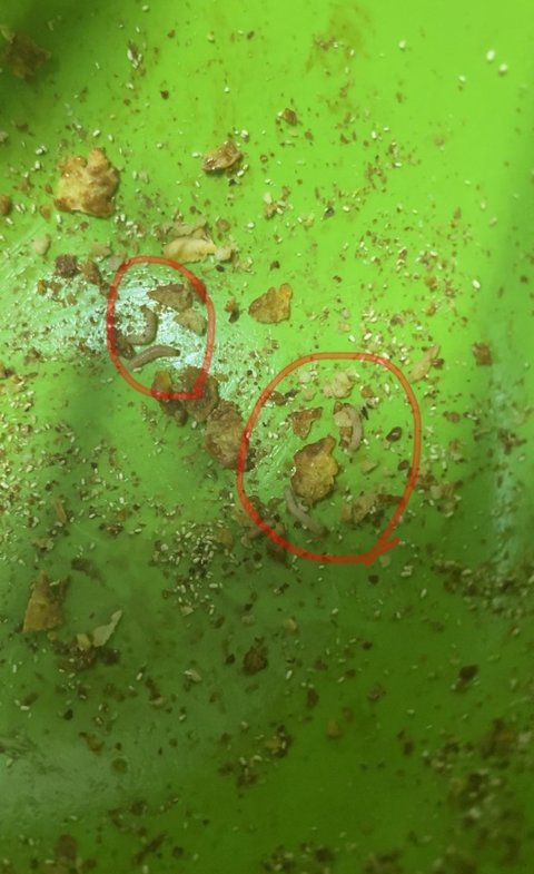 애벌레 10~20마리 (추정)이 시리얼 사이를 헤집고 다니고 있었어요..