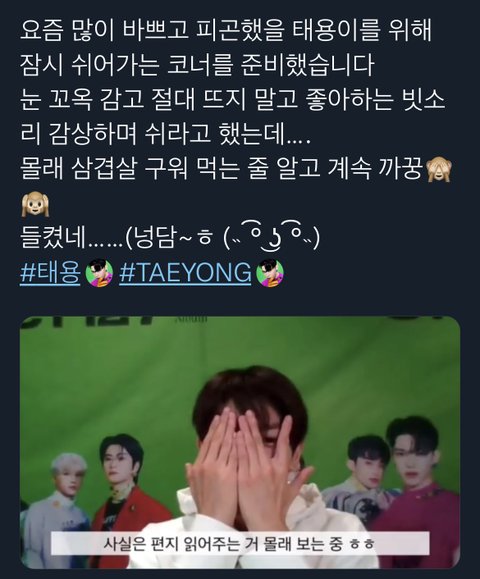 그냥 빗소리 틀어놓고 쉬라고 하고 본인이 준비해온 편지 읽음