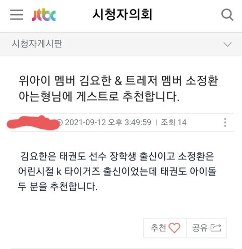 jtbc 게시판에 정환이 있음