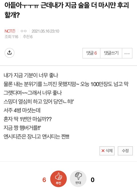 ㅈㄴ 웃기네 저날 소주 4병 마시고 다음날 개멀쩡해서 내가 술 세다는 거 자각함 소주만 4병이지 맥주도 두 병인가 마신 듯