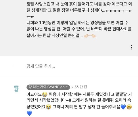 팬튜버분들한테 감사하다고 자부심 가지라는 영상팀