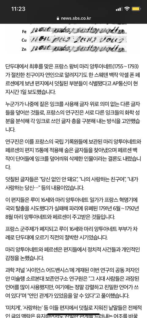 마리 앙투아네트 그 가려진 편지 해독된 거 봣어?