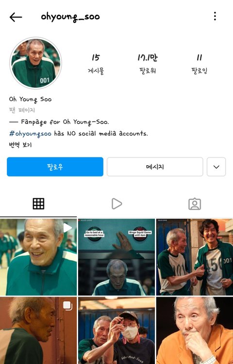 오징어게임 할배 팬계정도 있음ㅋㅋㅋㅋ
