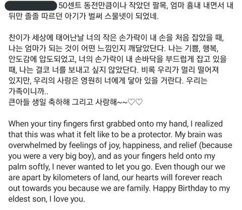 찬이 생일 어머니 인별.. ㅠㅠ