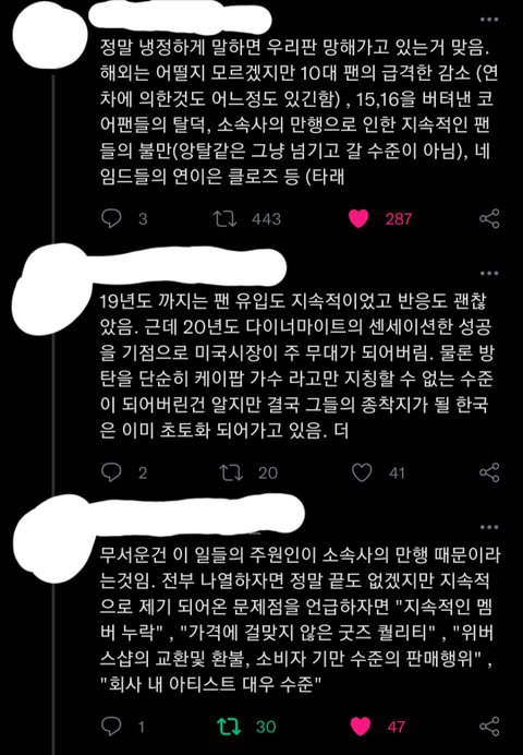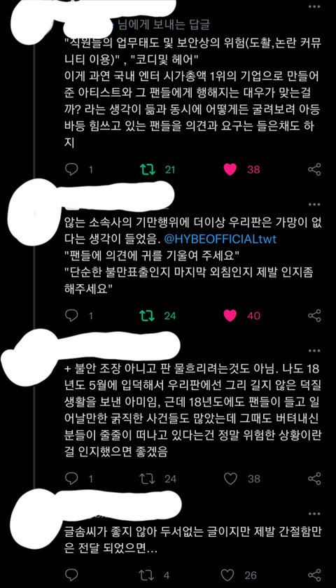 소속사가 국내아미들의 목소리를 더 들어줬으면.