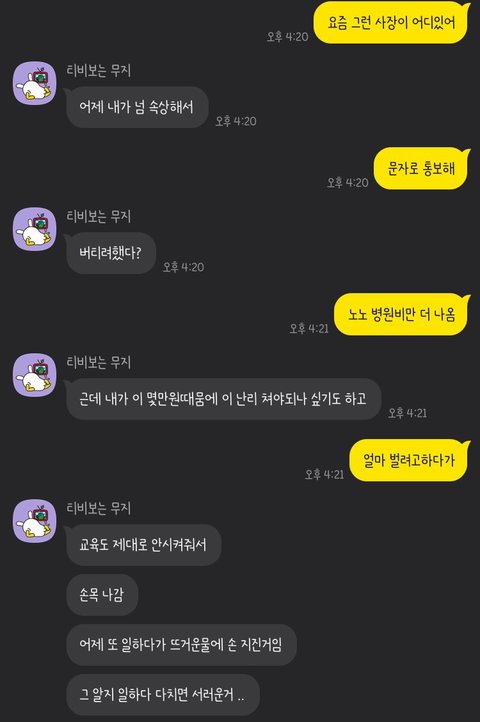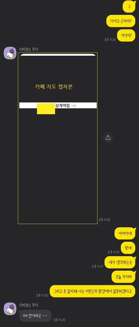 갑자기 ㅁ카페 아르바이트를 관두었다면서 연락이왔길래 왜 관뒀냐 물어보니,