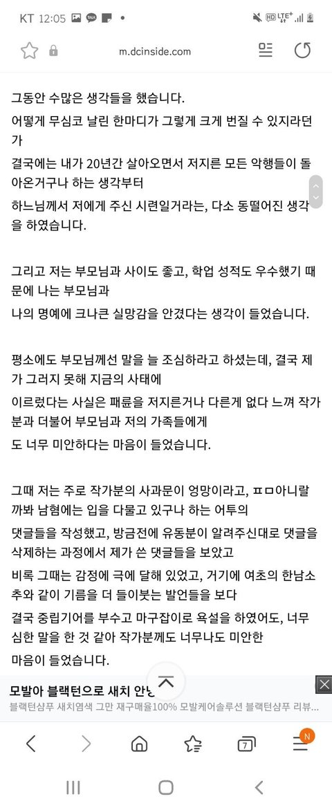 바연길 고소당한 디씨남의 사과문ㅋㅋㅋ