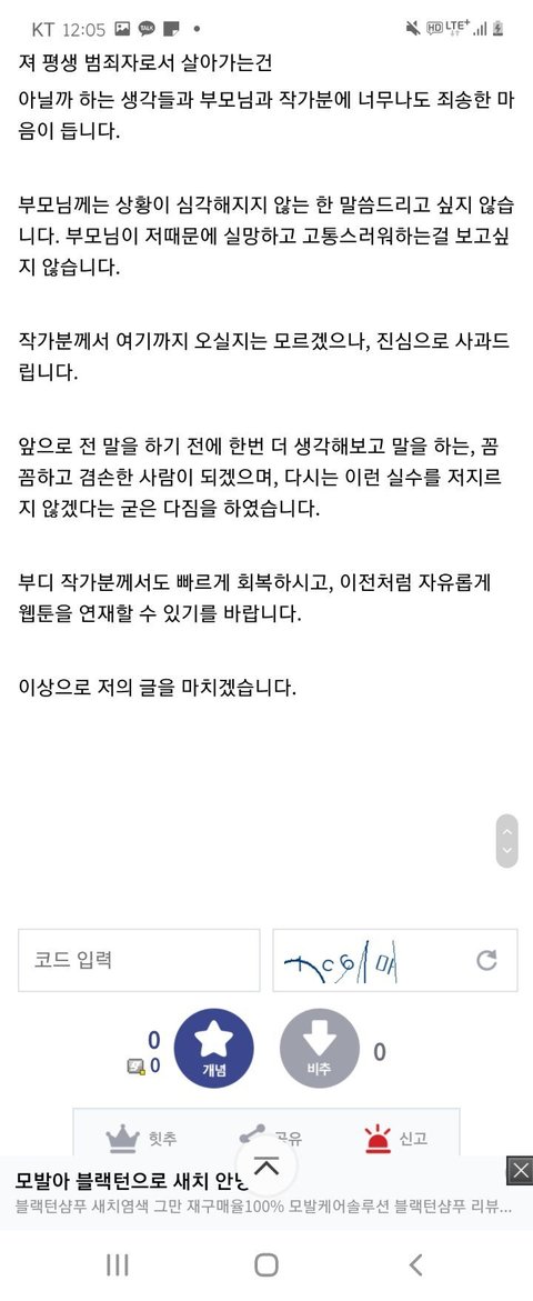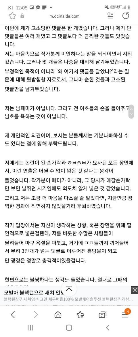 사과하랬더니 작가님께 직접 한것도 아니고 디씨에 자기연민 가득한 글만 올려놓은게 개웃겨ㅋㅋㅋ