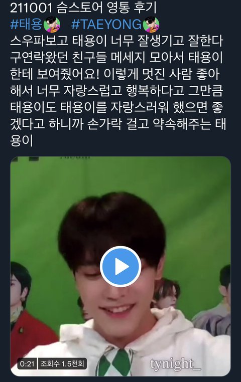 난 툥프는 아니지만 그냥 최애는 있지만 그냥 진짜 엔시티 다 좋고 다 행복했음 좋겠는 사람인데 ㅠㅠ 정말 너무 따수워서 울컥한다 진짜ㅠㅠㅠ 태용이가 과거나 최근 스우파로 욕 먹는 글 볼때마다 내 최애는 아니어도 그냥 너무 슬펐어 과거에 잘못은 했었지만 사과했고 반성하고 노력하는 사람인데 본판은 변하지 않을거야 과거에 그랬잖아.. 이러면서 사람이 바뀔 기회도 안주면서 계속 끌어올려서 욕만 하는거 그리고 이번 스우파로 태용이가 춤까지도 너무 까이는 것 같아서 정말 너무 마음 아파 그걸 태용이도 안 볼 수 없을텐데 비판이 아닌 비난을 하는 사람들에 나까지도 상처받는 기분인데 태용인 얼마나 상처받을지ㅠㅠ 인류애 박살나다가 이런거 보면서 다시 회복돼 ㅎㅎ