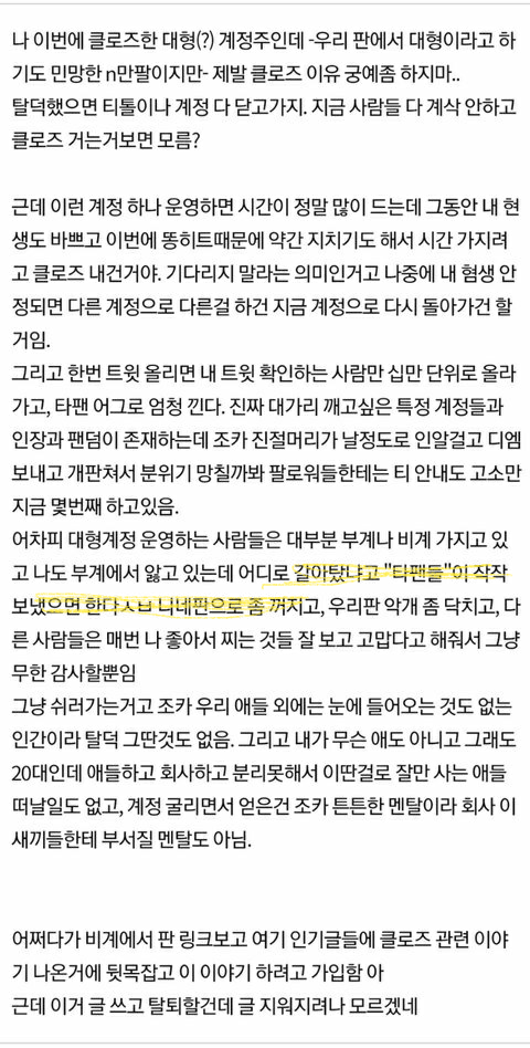 클로즈는 맞는데 탈덕은 아님 그리고 요새 대형계들 클로즈 많이 하긴하는데 경험상 절반은 다시 돌아옴