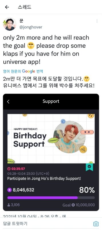 종호 생일광고 유니버스 도와줘