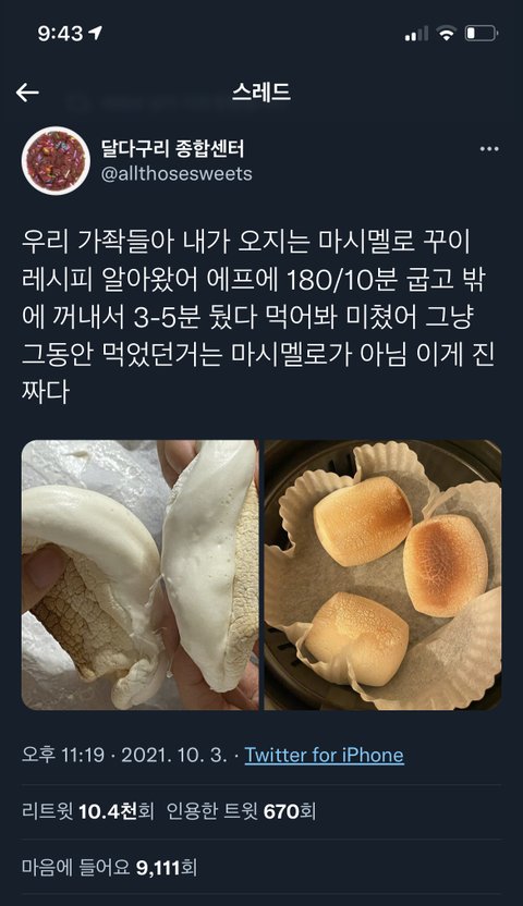 마시멜러우 잇는 가좍들 들어와바