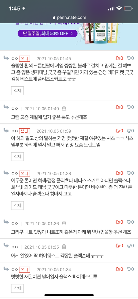 1회 댓글로 옷 질문 받음