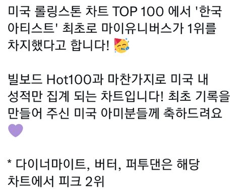 이게 가능한 일이구나 롤링스톤 차트 1위는 ㄹㅇ 예상도 못했다