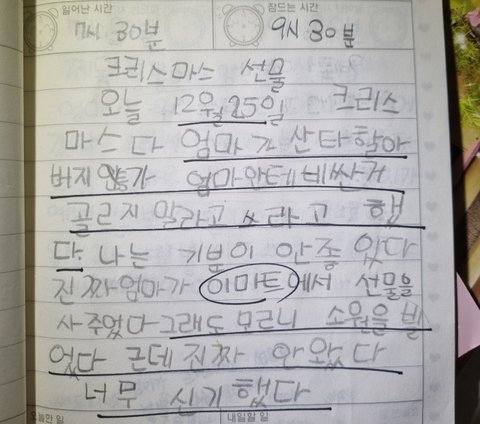 초1 아기때 일기 잠깐 공개하도록 하지
