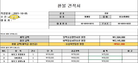 그래서 인스타육성관리건은 제가 따로 경찰서에 소액 사기건으로 신고 했고.. 블로그 체험단 광고 1년 계약건은 계약해지 요청하니..말도 안되는 금액으로 환불 견적서를 보내 왔네요...