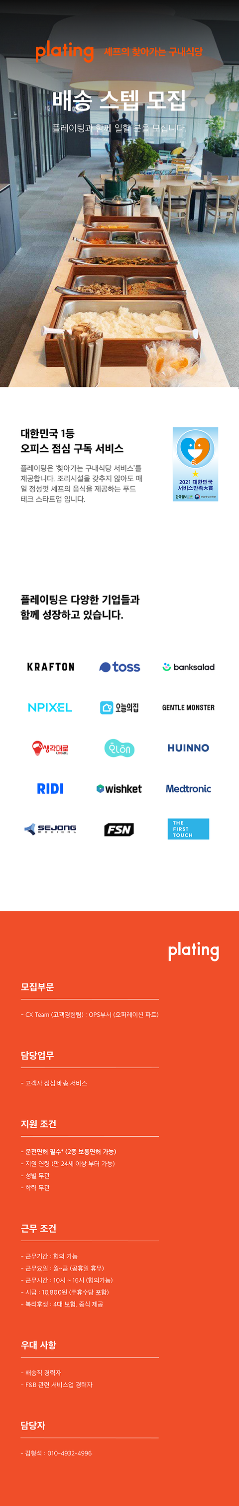 [꿀알바] 기업의 식문화를 책임지는 플레이팅입니다.