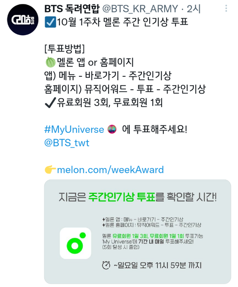 1년간 누적된 투표로 멜뮤시상식때 반영된다고 본적이 있는데 하루에 한번 !꼭 챙기자~