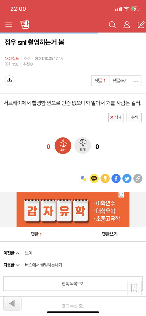 레알 구라 아니였다고TT 낮에는 정우 혼자 있었던 거 맞고 다른 배우분들 여러명 계셨음 그리고 ㅈㄴ떡진 머리에 체크 안경 맞고 같은 서브웨이에 지금 밤에 다시 가서 촬영하고있음