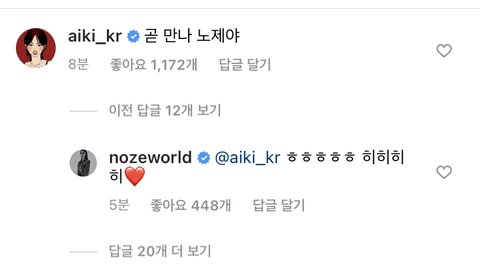 방금 노제가 게시물 올렸는데 아이키 댓글 머야머야,, 둘이 같이 뭐 하나??