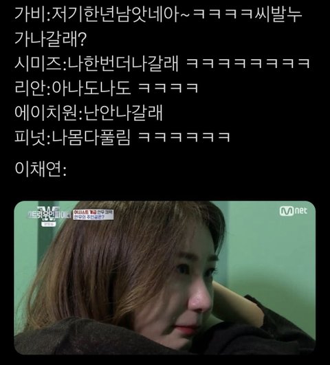 오늘 뿐만 아니라 스우파 할때 이채연이 욕먹을 포인트가 없는데 트위터랑 판에서 이채연 까글 너무 많아