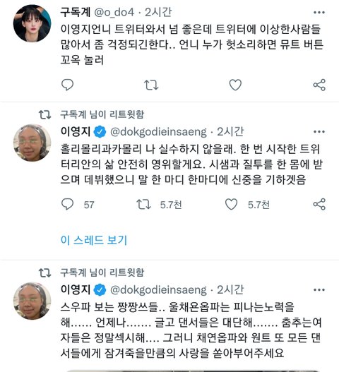 이영지가 이채연 트윗올리고 이런 트윗씀