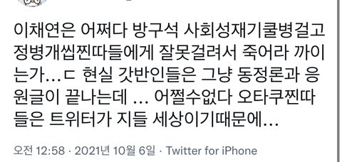 타회사 여돌이 저랬어봐... 판슴퀴들이 진작에 글 퍼나르며 사재기여론 뚝딱 만들고 남았을듯 진짜 끔찍하다