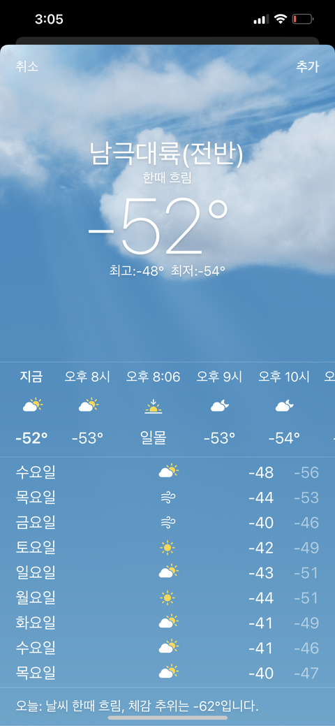 남극이 생각보다 춥구나..