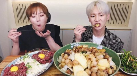 (음식은 육회, 대창 부추무침)