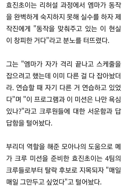 효진초이가 엠마(혜민)와 크루원들한테 보낸 메시지