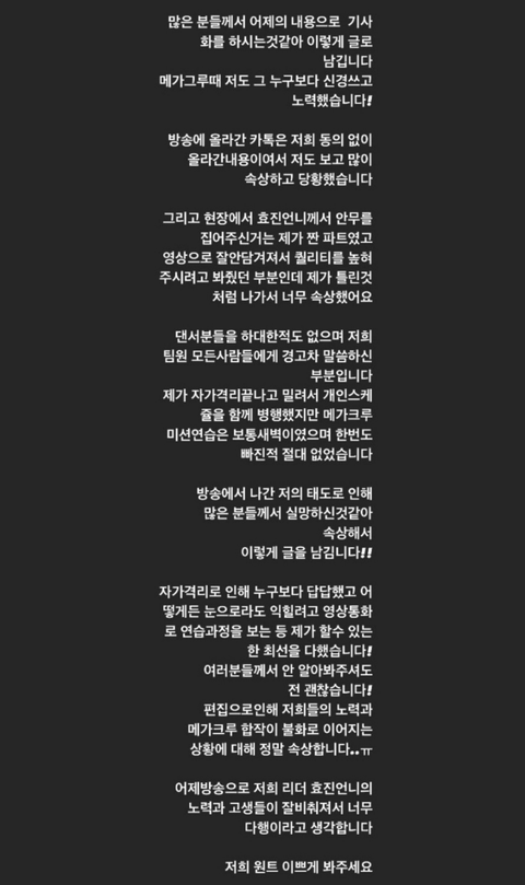 효진초이 이번 메가크루 준비하며 5kg 빠졌다고 함