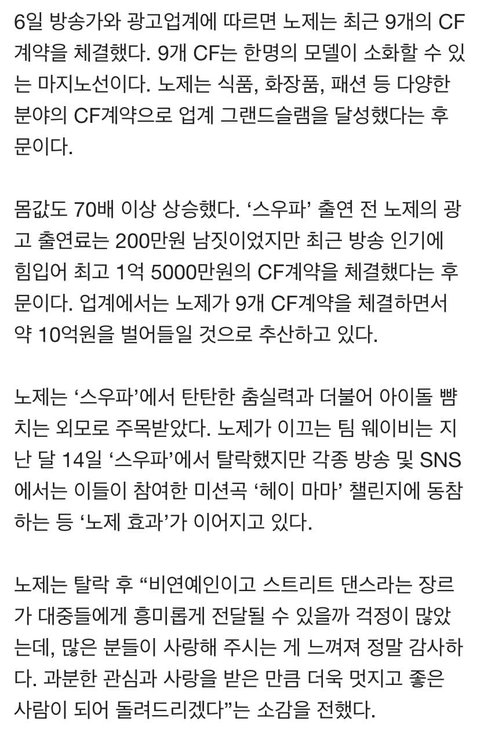 노제 엔터계 몸값 200만원->10억 CF스타 등극