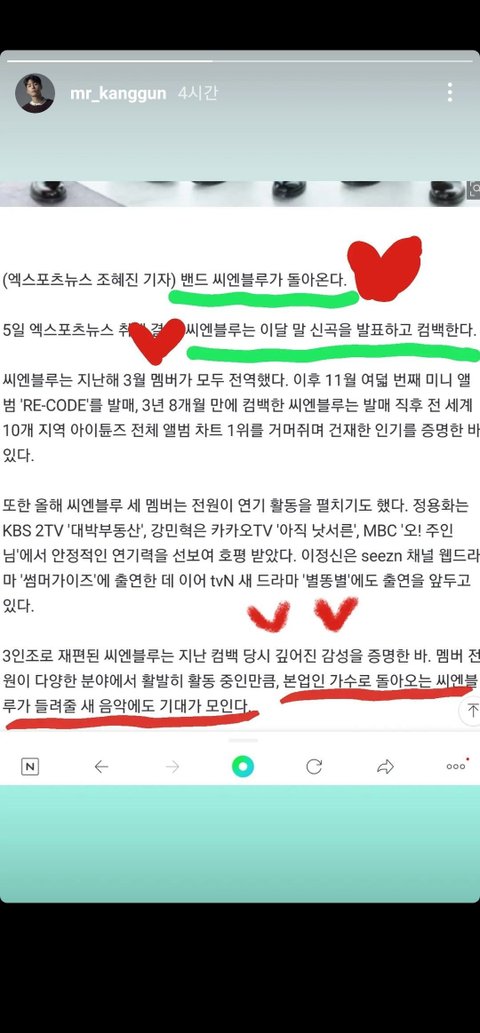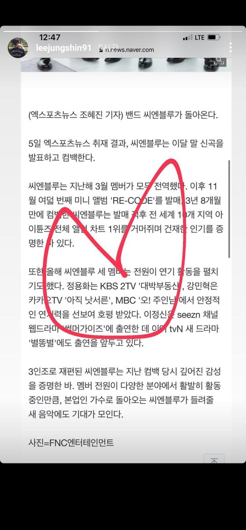 1. 기사 캡처해 손(으로 그린)하트 폭발하는 막내라인