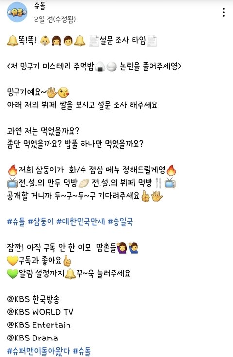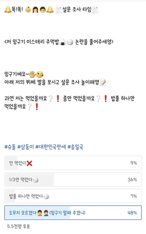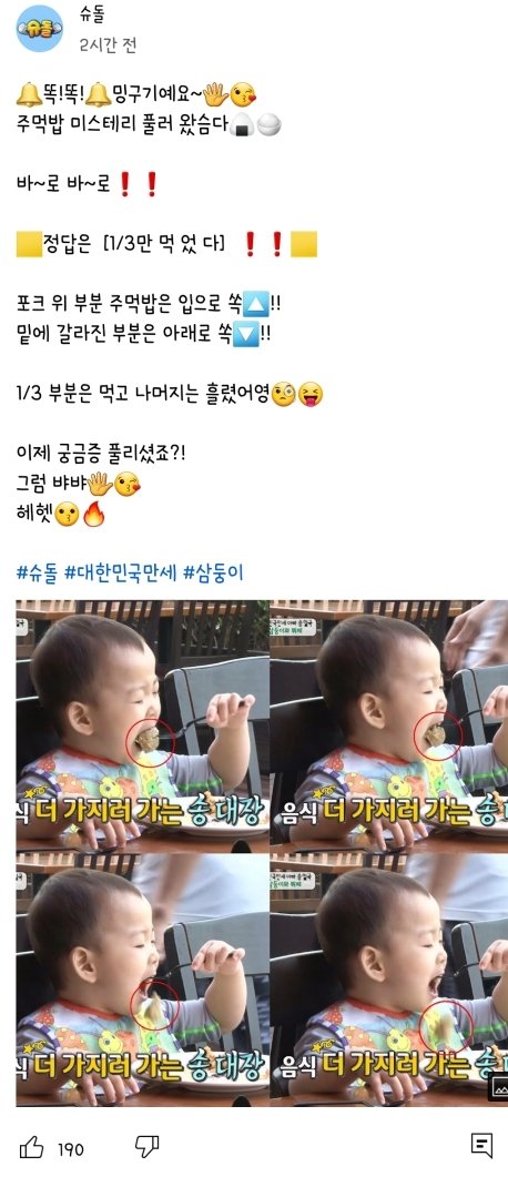 그 중 주먹밥 미스테리를 슈돌 유튭 공식계정이 언급함